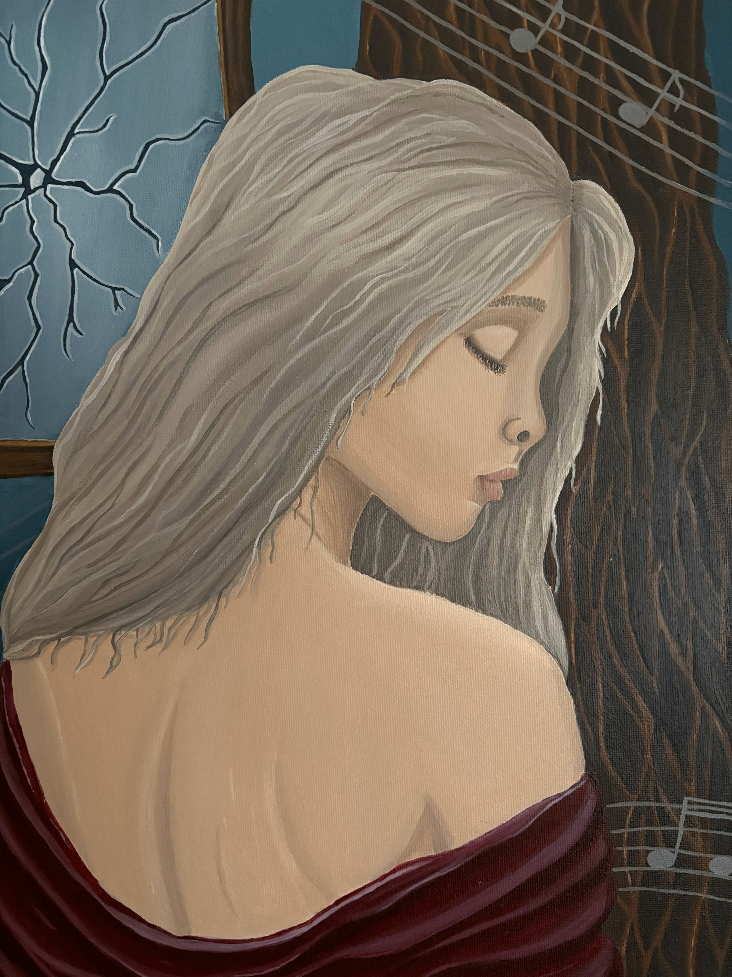 Das Werk entstand als emotionale Resonanz auf das Lied Cherry von Lana Del Rey (Spotify). Ausgangspunkt ist die stille, nachhaltige Wirkung der Musik, die sich im Inneren festsetzt. Musik bildet die emotionale Grundlage, aus der sich Bildraum und Symbolik entwickeln.